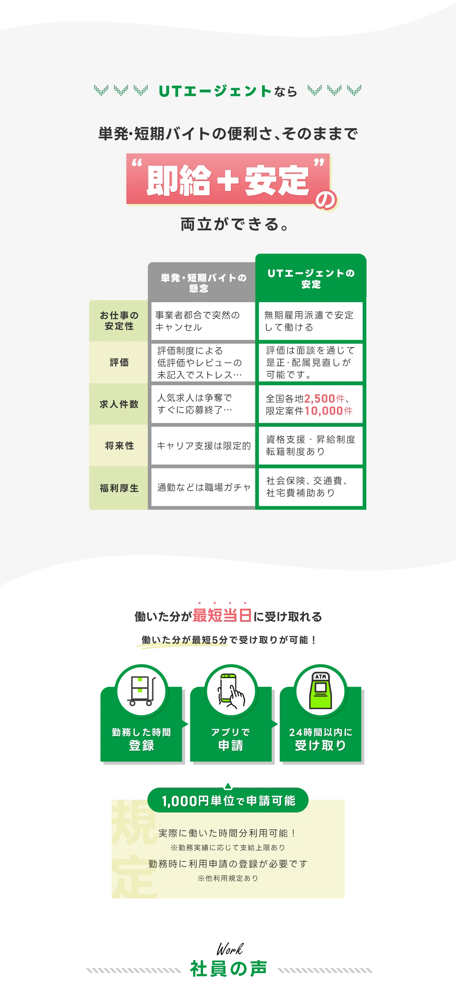 一口1,000円の少額から購入できる社員持株会や給与の前払いに応じる速払い制度、