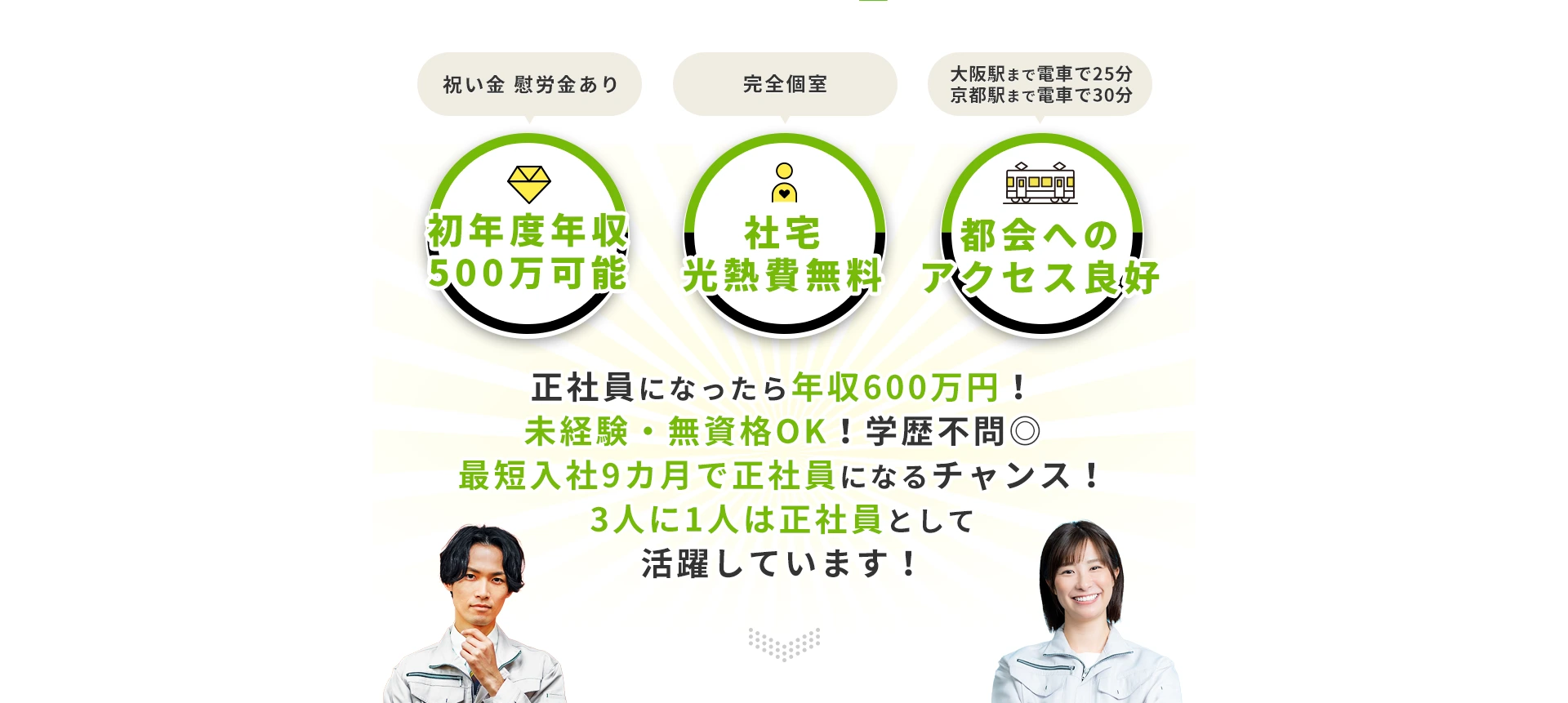 | 特徴 | ■入社祝金:15万(入社2ヶ月後支給) ■6か月毎に総額192万円の慰労金支給 ※出勤率90%以上・規定有 1年目 1回目30万円 2回目30万円 2年目 3回目33万円 4回目33万円 3年目 5回目36万円 6回目30万円 計:192万円 ■ミニボーナス:6月、12月支給 (14万円ずつ計28万円/年) ■【寮完備】寮費、水道・光熱費無料 ■社員食堂あり 1食あたり250円補助(メインメニュー10種から1つ、サブメニュー6種から2つ選べます) ■バイク通勤OK(駐輪場無料) ■大浴場・シャワー室付ロッカー完備 ■売店・休憩室完備 ■社会保険完備 ■制服貸与(作業服上下・安全靴・ロッカー) ■寮完備(家賃・水道・光熱費無料) ■女性寮あり(女性はレオパレスタイプ物件) |